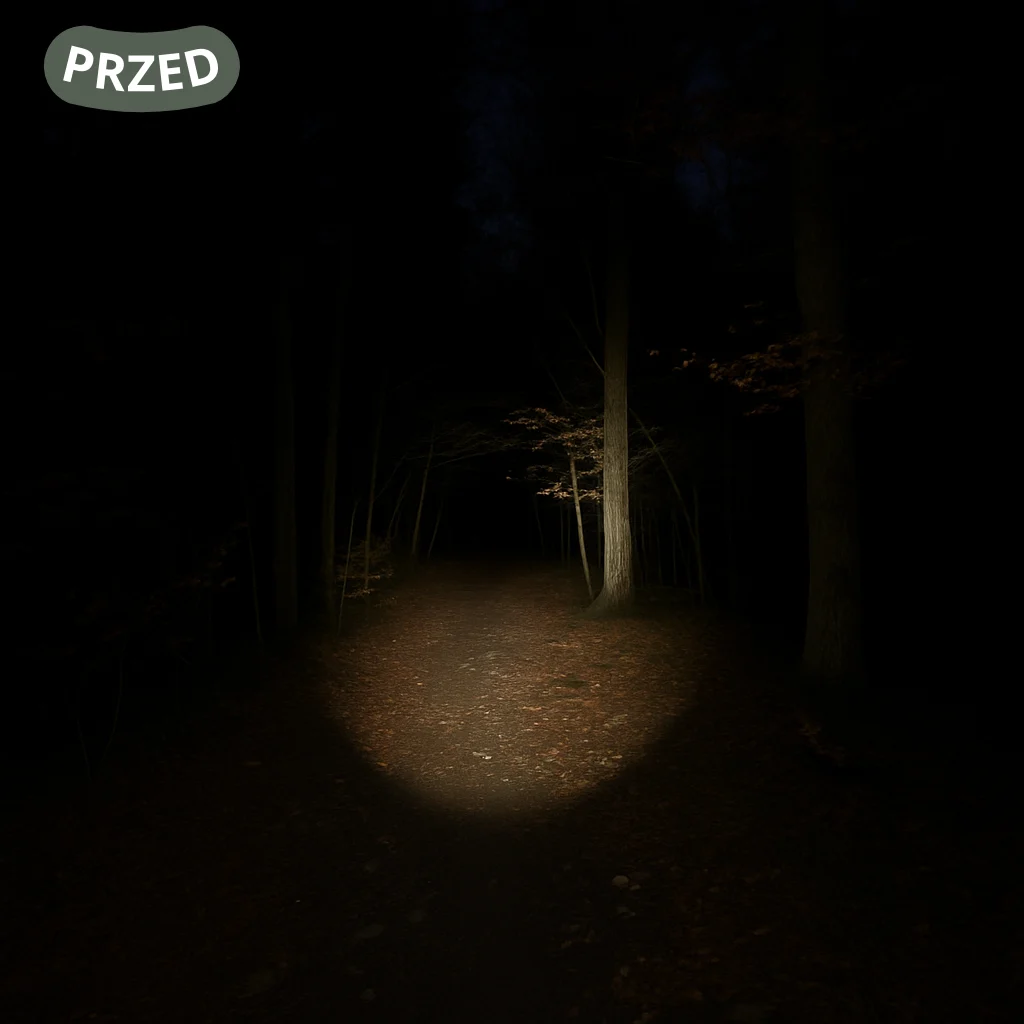 W przeciwieństwie do wąskich czołówek, które oświetlają tylko małe kółko, nasza lampka zalewa całe miejsce pracy jasnym, równomiernym światłem.